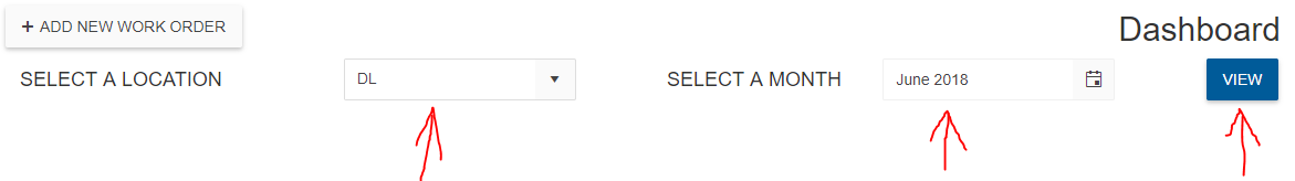Back on the dashboard page, at the top there is a "SELECT A LOCATION" drop down menu, "SELECT A MOTH" date picker menu and a "VIEW" button.