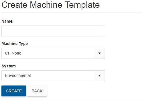 This will bring the user to a "Create Machine Template" view page. The user will enter the name of the machine template, select the machine type the user wishes, and also select the system the user wants.