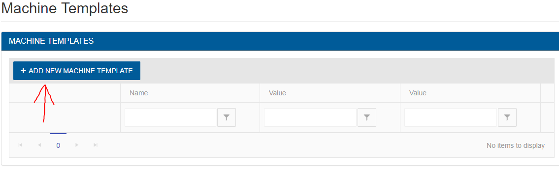 The Machine Templates drop down will bring you to a Machine Template view page. Creating a machine template can be very useful for creating future machines. To add a new machine template, click on the "ADD NEW MACHINE TEMPLATE" button.