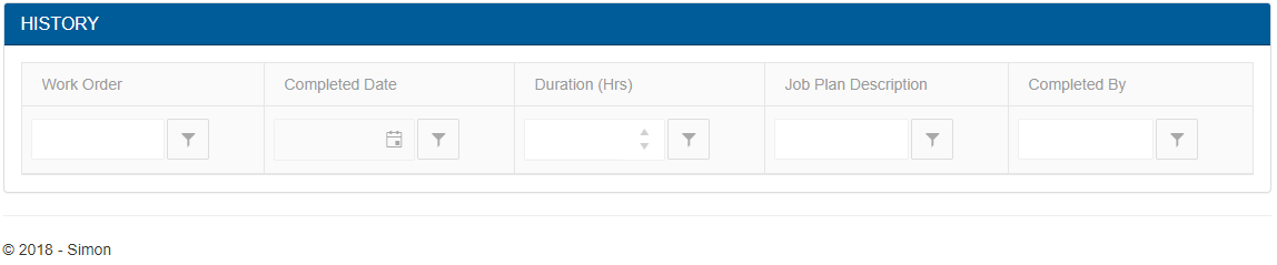 The "History" section is the final section on the "Edit Machine" page. When a work order is completed, they will show up this section. Inspection work order and Corrective Action work orders will both show up on this grid. Scroll back to the top and press the "SAVE" button which will take the user back to the "Machines" page.
